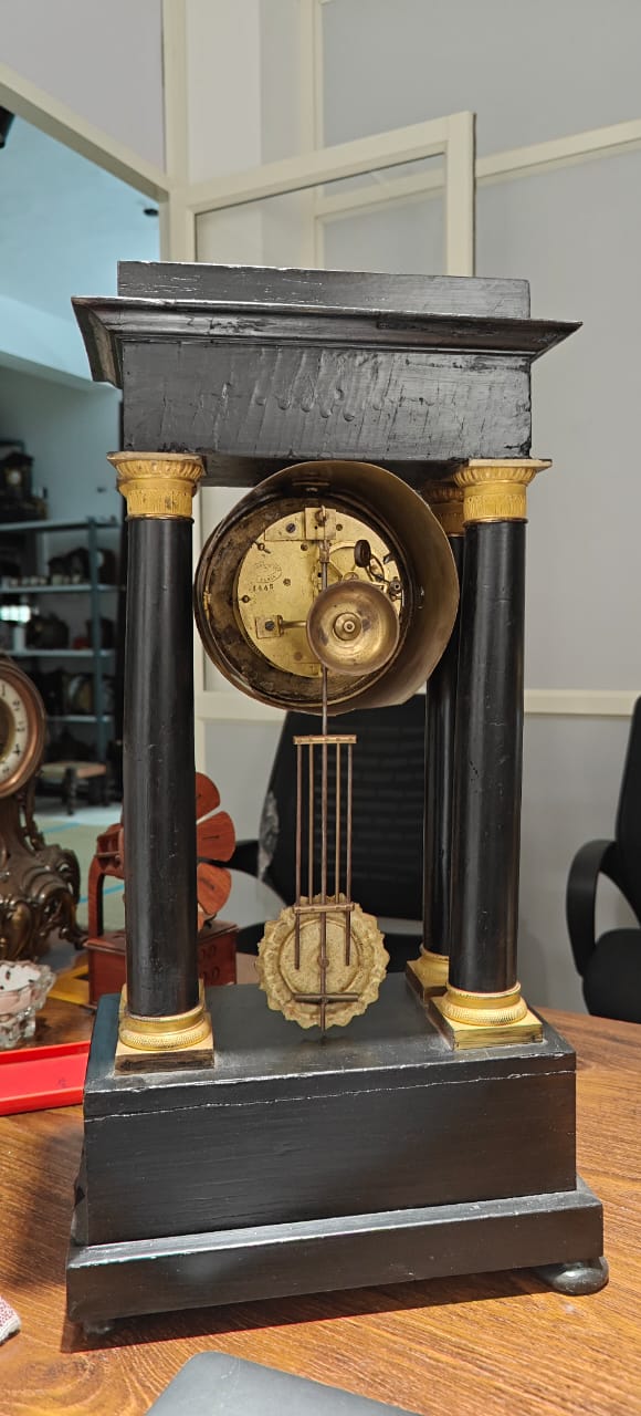 Featuring gilded bronze columns, handcrafted ormolu mounts, and a porcelain dial with Roman numerals — it radiates the sophistication of 19th-century French nobility.