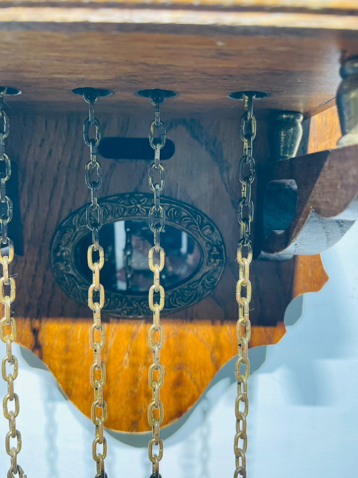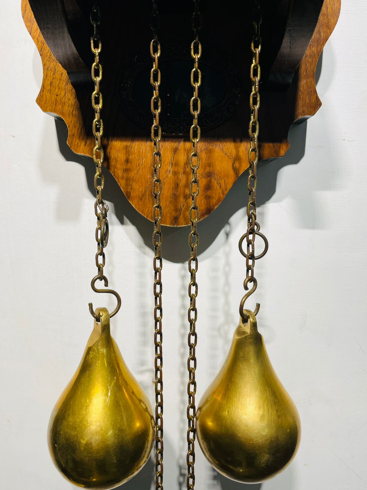 Ornate brass pendulum and weights